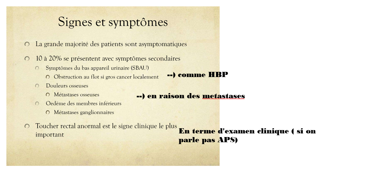 donne présentation clinique possible de patient avec cancer prostate