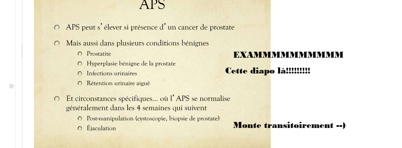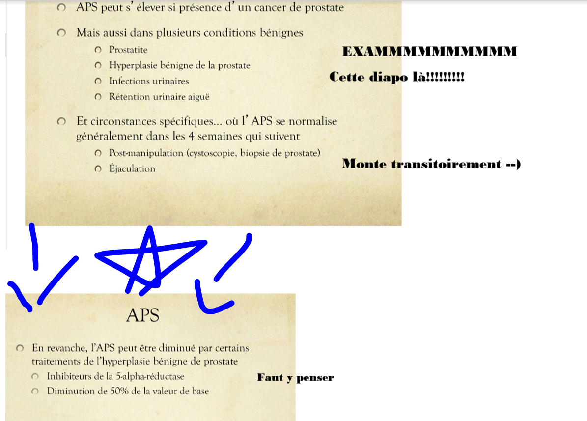 v/f si patient a hbp, on pourrait s’attendre à APS basse ou normale, meme si a un cancer de rajouté sur l’HBP