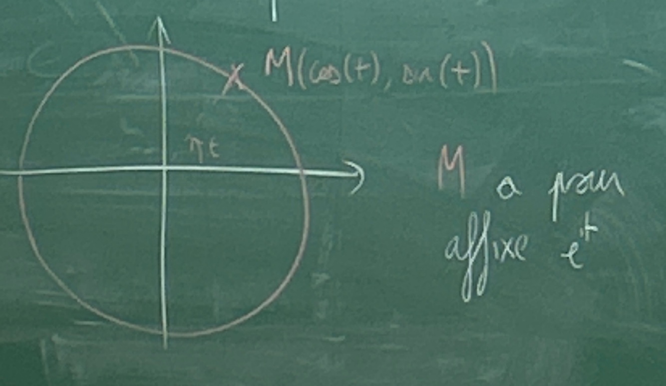 Ainsi, exp(it) est l’affixe du point M du cercle trigo avec un angle t (image)