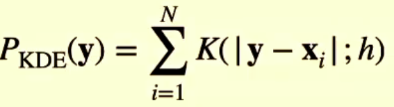 The pdf is computed using a kernel function which is a function of the distance from the training point and a width parameter h. the formula:
