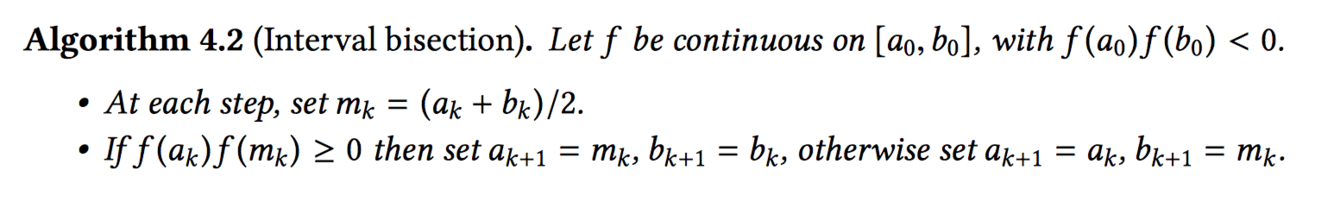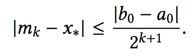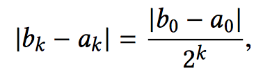 What is the error of the midpoint of an interval after k interations of interval bisection?