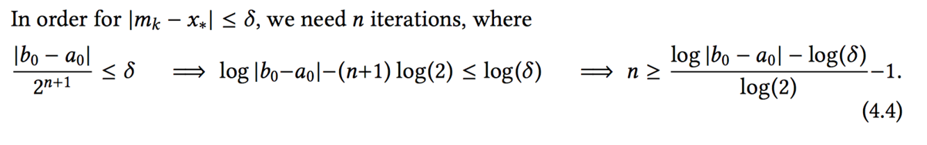 How many iterations do we need to make the error of the midpoint |mk - x*| ≤ δ?
