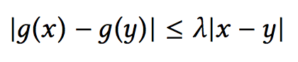 A contractiln map f, is a map L ➝ L (for some closed interval) satisfying?