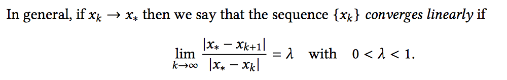 The error |x* - xk+1| to the error at the previous step |x* - xk|