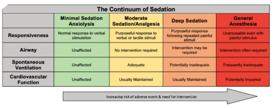 Depth of sedation is a continuum > patient may progress quickly from one level to another > BE VIGILANT and ready to respond
