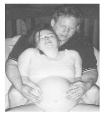 Here is a woman experiencing a contraction supported by her partner.