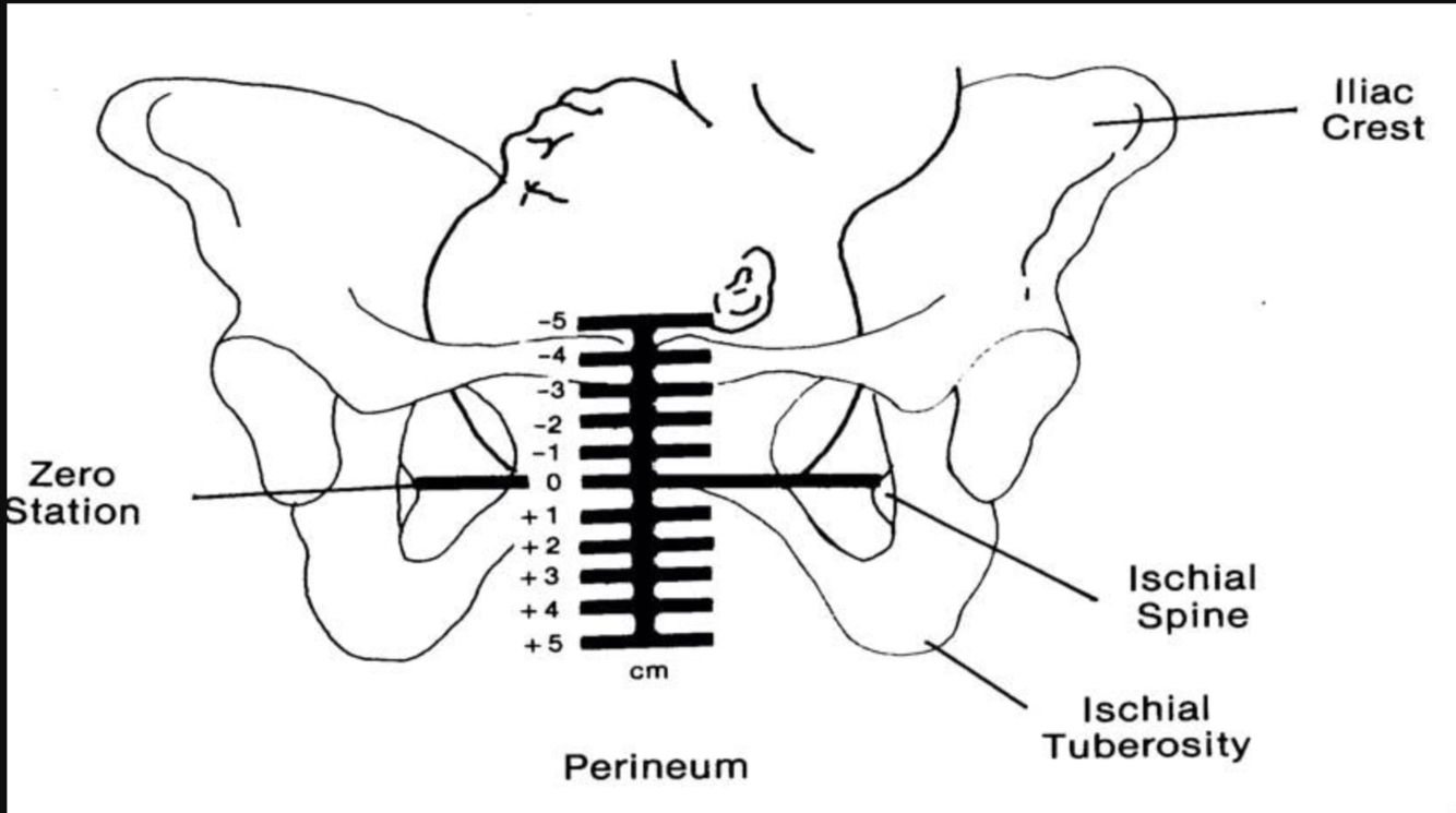 Descent of the fetal head in relation to the ischial spines