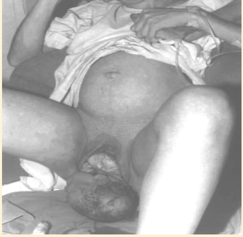Here you can see the birth of the fetal head facing the right maternal thigh. Plus the emergence of the anterior shoulder.
