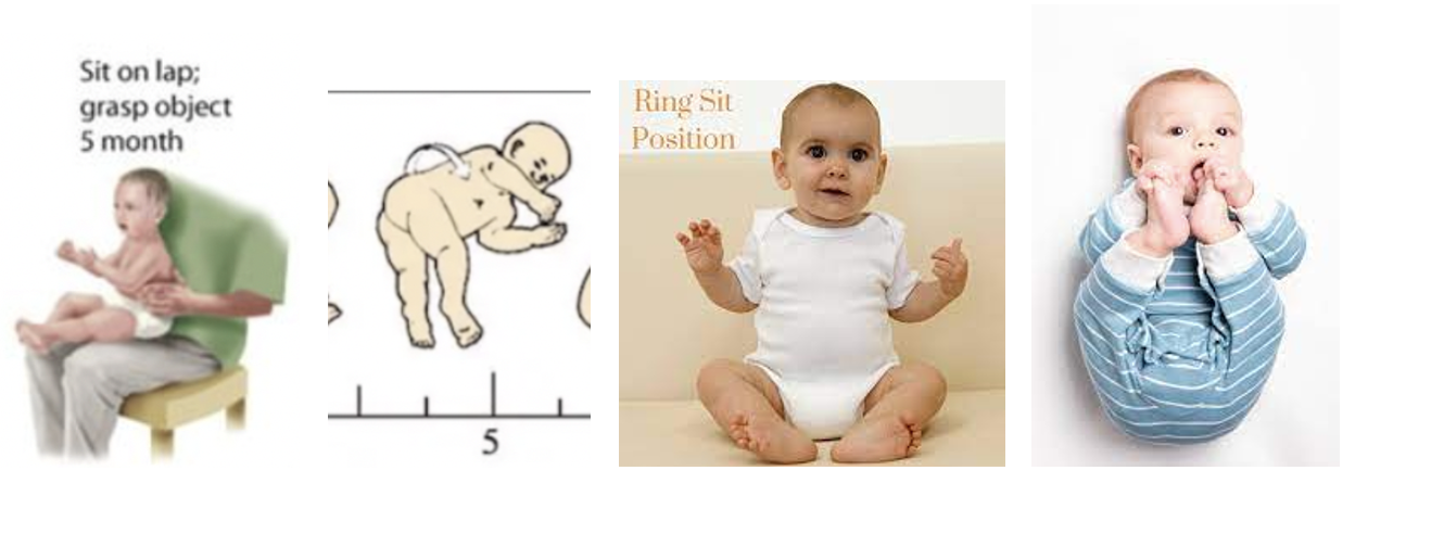 lateral flexion, manipulation of objects, spinal mobility, ring sit, and PALMAR GRASP