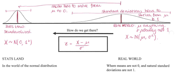 How do we get from real world hypothesis testing (non-standardised) to stats land (standardised)