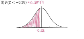 3) the area is the probability given in the question