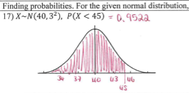 2) use Ncd, and have the mean be the mean and sigma as the sigma (in this example mean = 40, sigma = the square root so 3