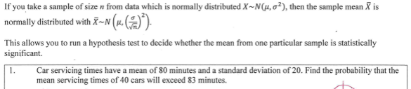 3) write the sample mean normal distribution and state sd