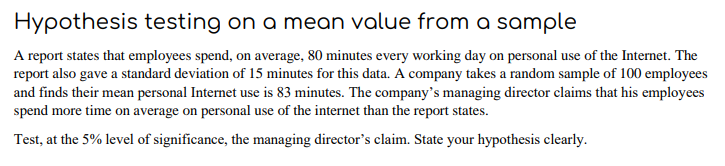 How to solve a hypothesis on a mean value from a sample