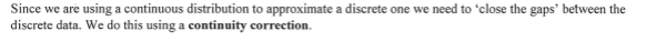 what is one thing we have to do due to going from continuous data to discrete data when approximating a binomial to a normal