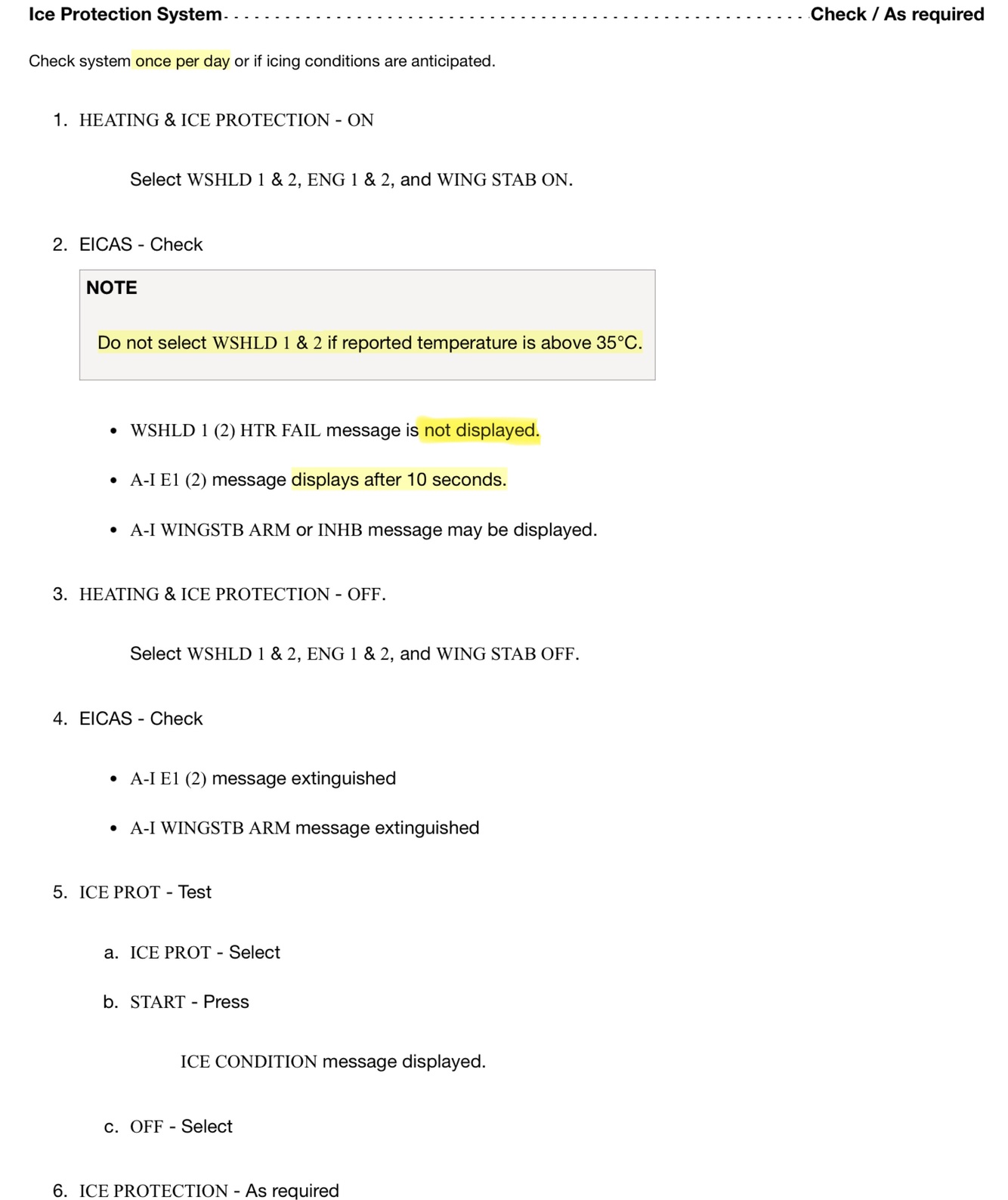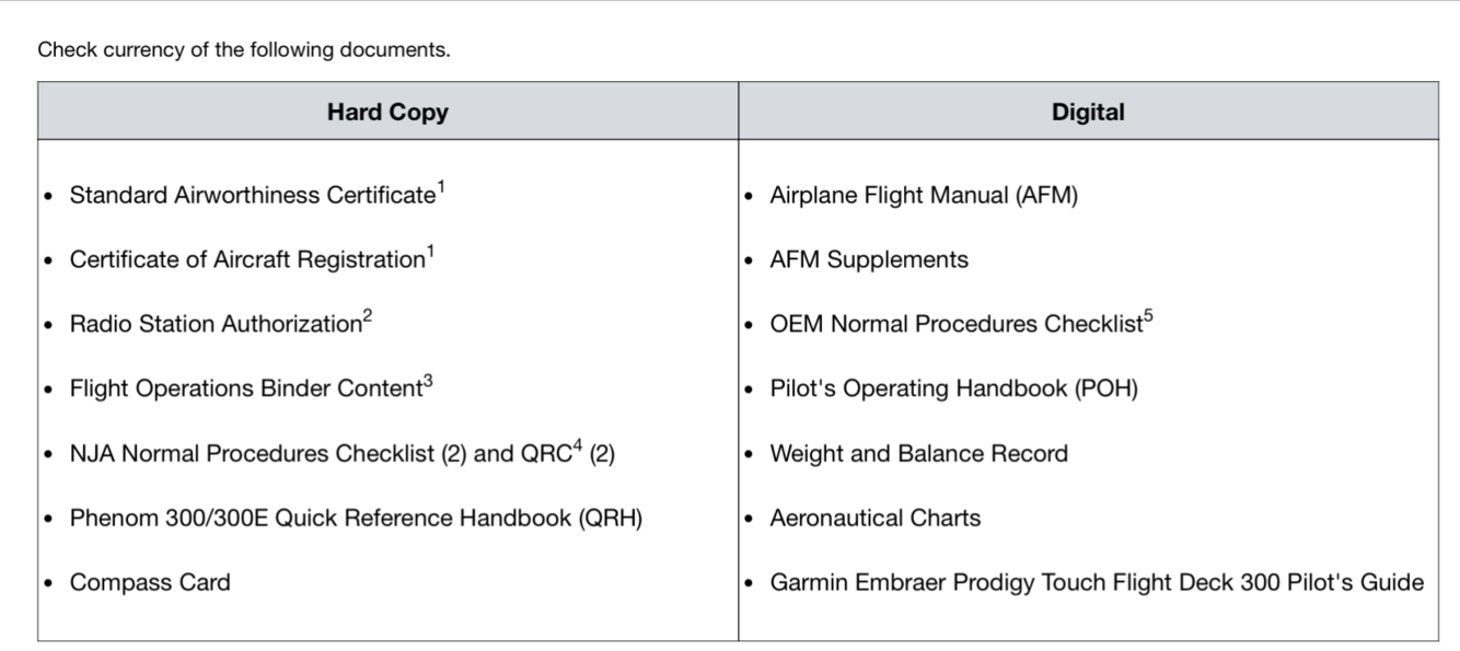 Trigger: Pilot change, first flight of duty period, or if MX has been performed on the A/C