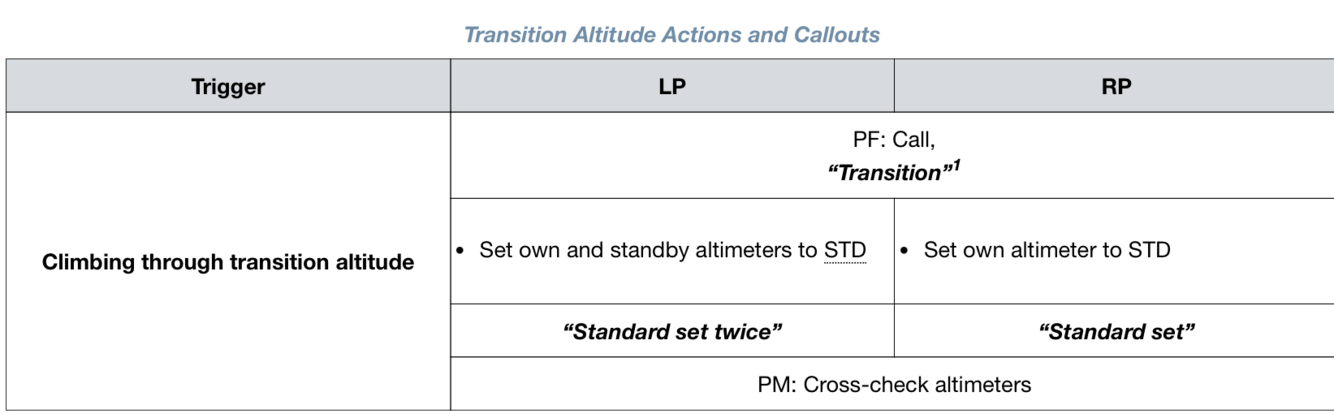 Trigger: Climbing through transition altitude