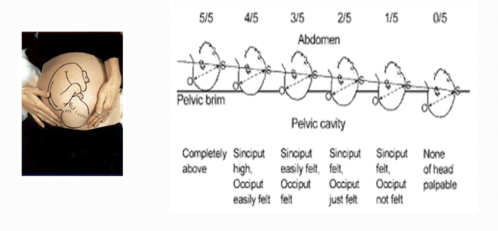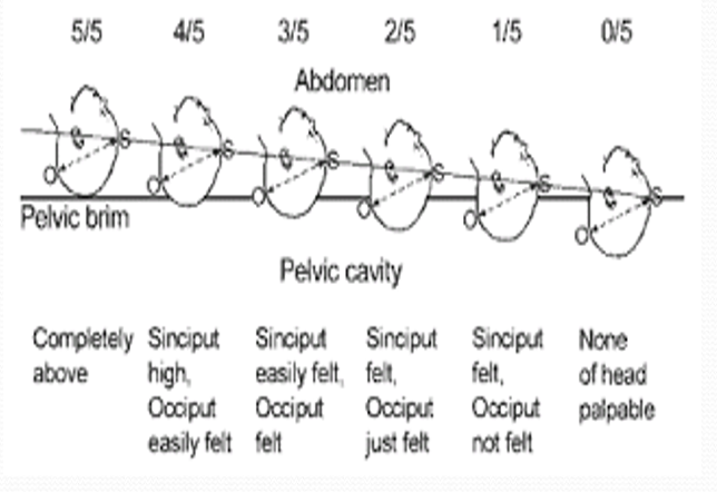 When describing descent of the head, what is meant by 5/5 and 0/5?