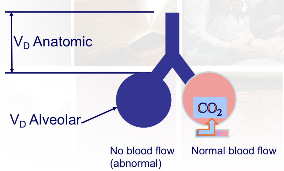 The total dead space, also refered to as physiological dead space, is the volume of inspired gas hat doesn’t exchange CO2