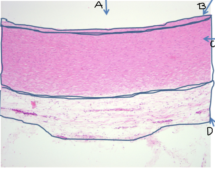 D - Tunica adventitia, external elastic lamina and connective tissue (and blood vessels)