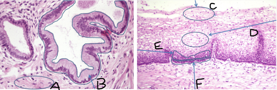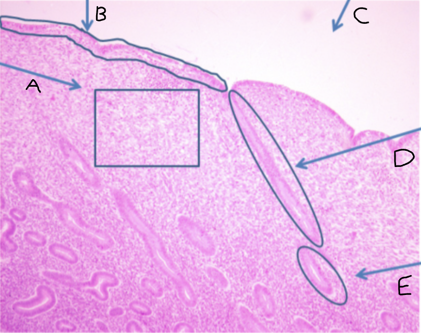 Identify tissue and features A-E