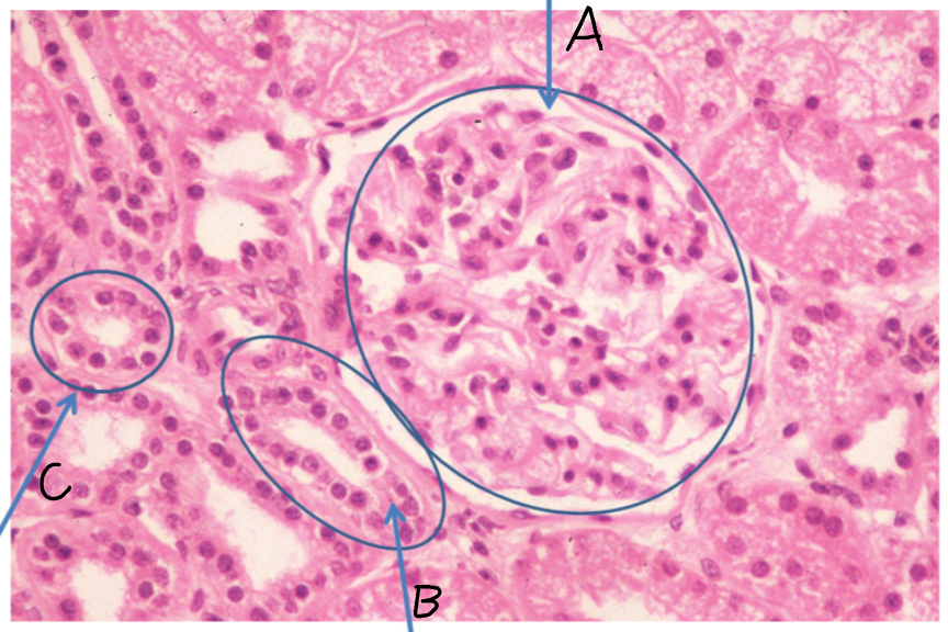 B+C - Renal tubule, lined with cuboidal epithelium