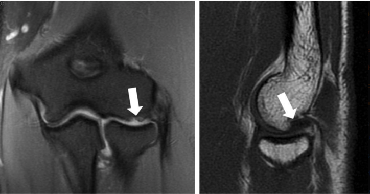 Pseudodefect of capitellum refers to an abrupt contour change of the posterolateral margin of capitellum on coronal sections and is a potential MRI imaging pitfall giving rise to misinterpretations. It occurs because the width of the articular surface of the capitellum is non-uniform and gradually tapers posteroinferiorly.