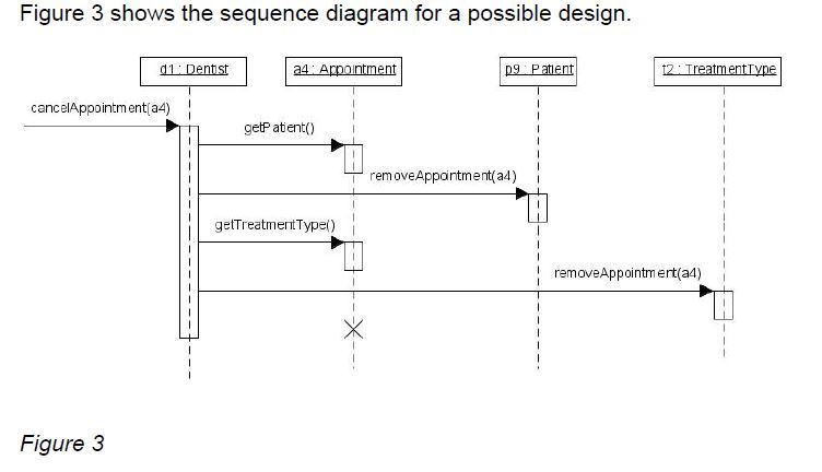 (a) Explain the meaning of the cross × on the lifeline of a4.