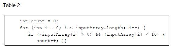 Calculate the cyclomatic complexity of the code extract in Table 2 below,