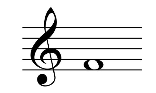 What is the note on the second line of the treble clef stave?
