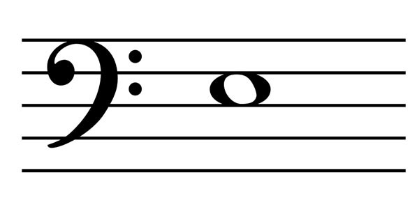 What is the note on the second line of the bass clef?