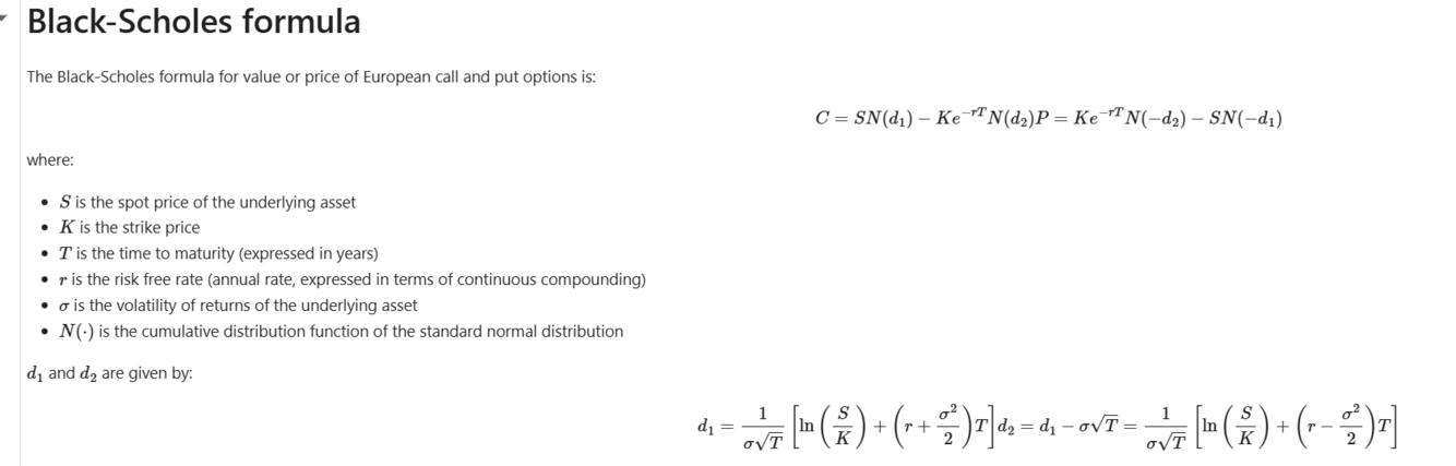 What is the black-scholes formula for call and put options?