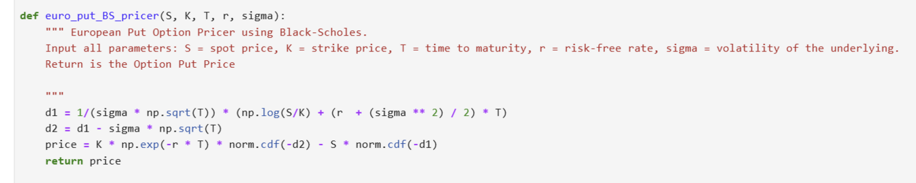 How do you write a euro_put_BS_pricer function?