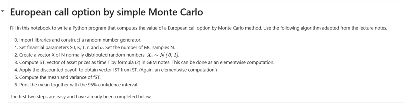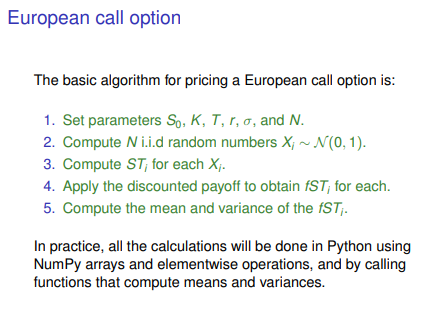 Standard algorithm for European Call Options?