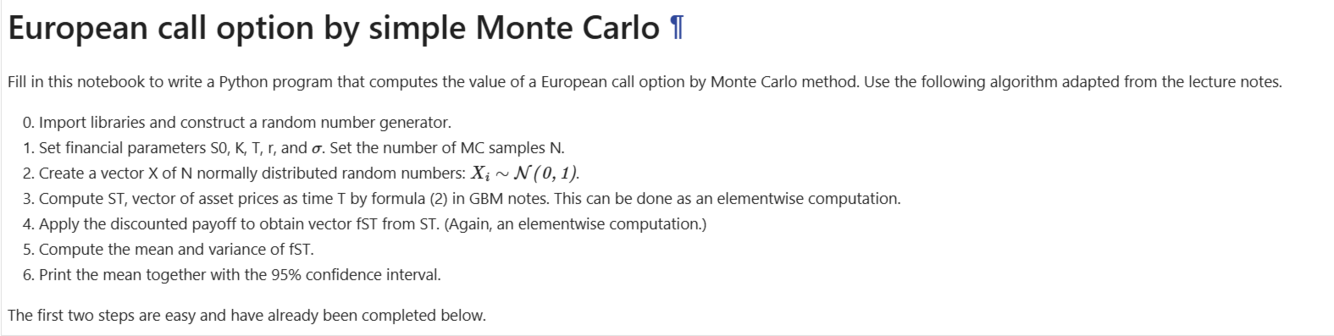 What are the usual steps for calculating a European call option by simple/naive Monte Carlo?