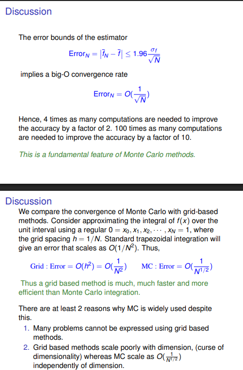 BigO of Monte Carlo methods?How does it compare to grid methods? Why is MC widely used?