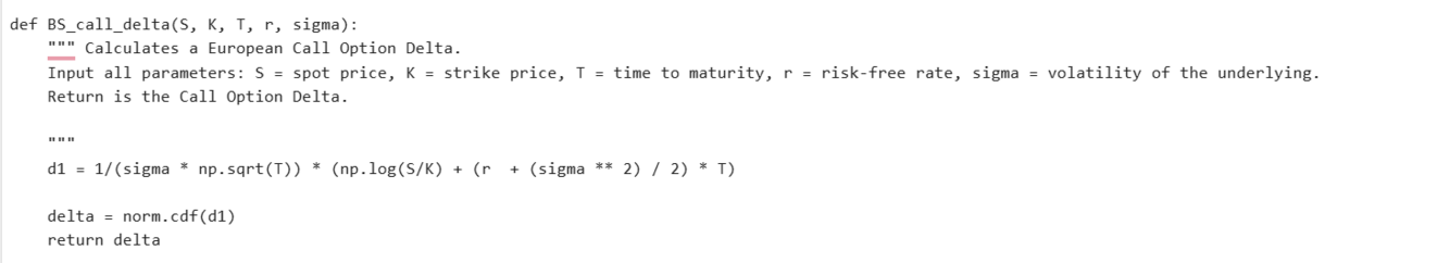 What is the function for calculating the BS_call_delta()?