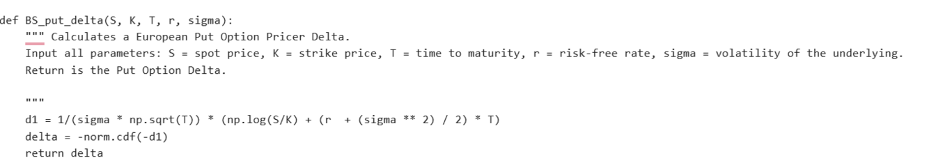 What is the function for calculating the BS_put_delta()?