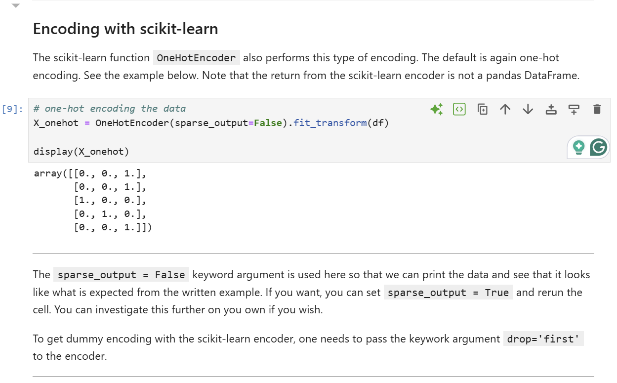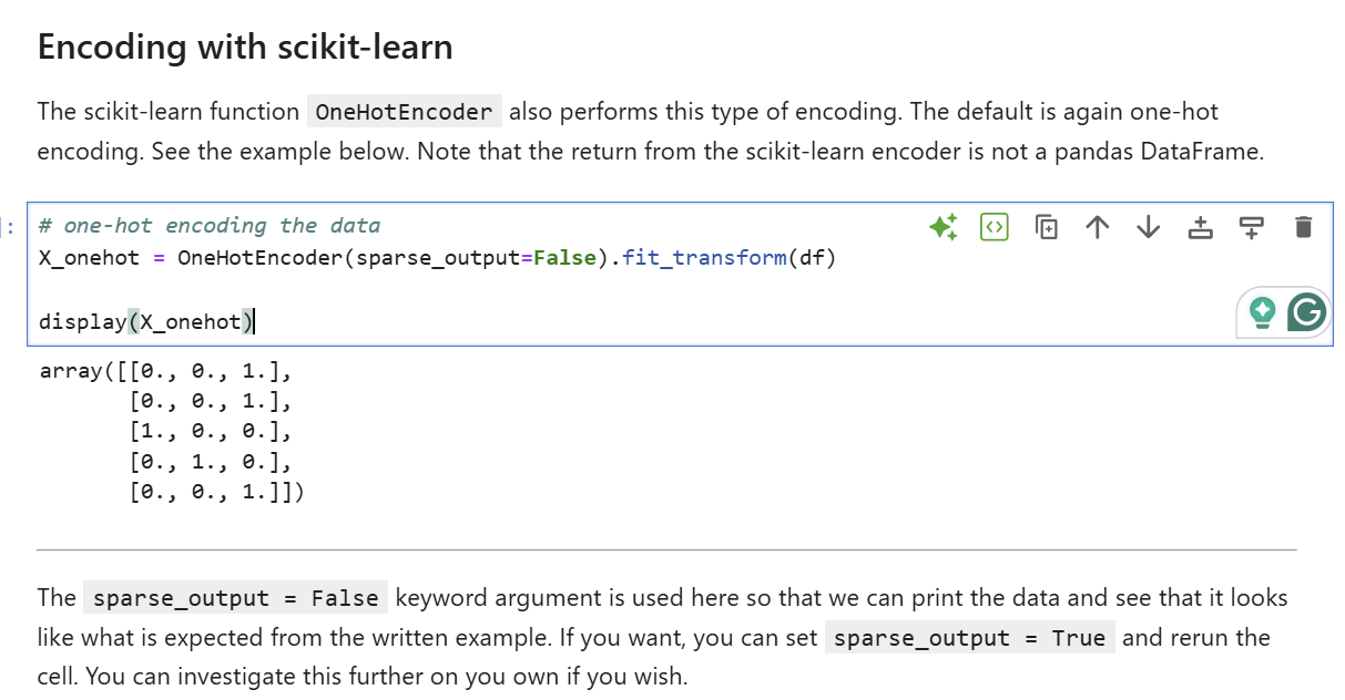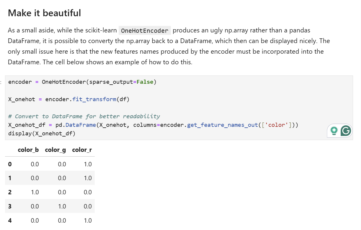 Say if you have use scikit-learn to use onehot encoding how do we convert it back into a dataframe? What do we need to be mindful of?