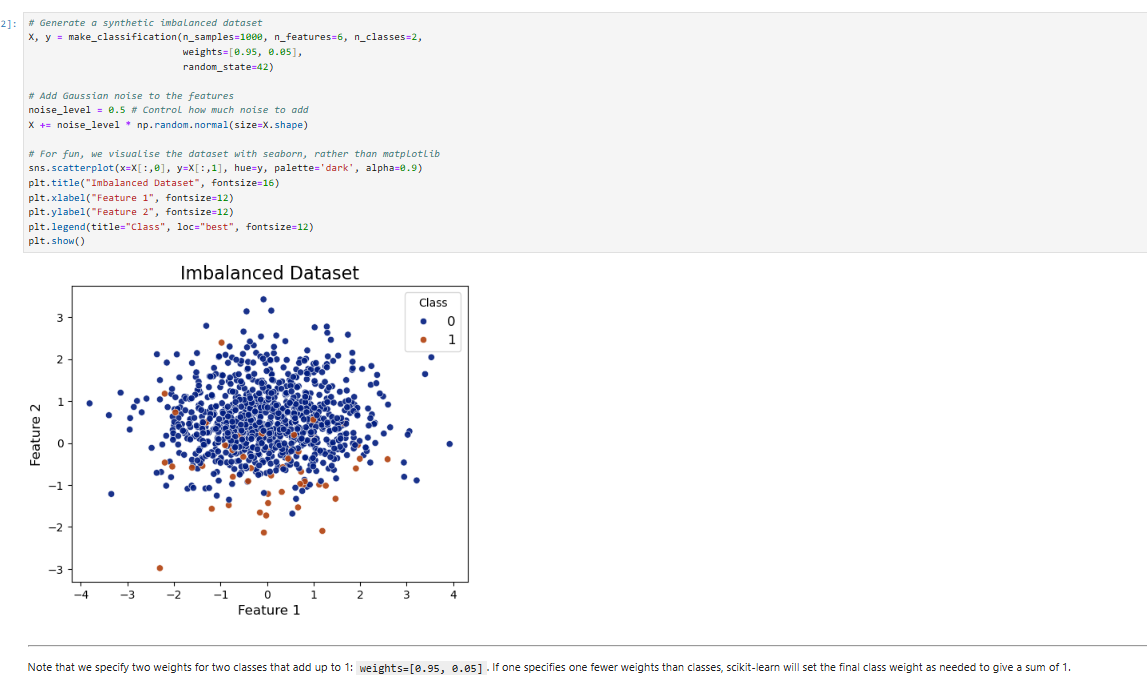 The RandomForestClassifer has a parameter class_weight. The “balanced” mode uses the values of y to automatically adjust weights inversely propotional to class frquencies in the input data –> setting class_weight = “balanced” should improve the the AUC to about 0.87 for this artifical data set