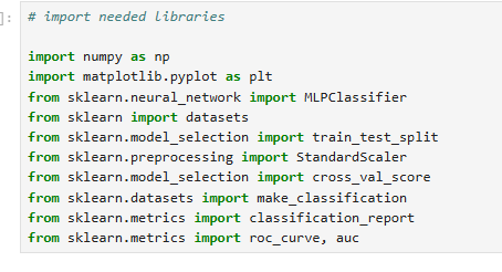 What are all the import statements required for using MLPClassifer?