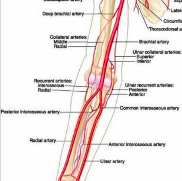 What artery arises form the profunda brachii and anastomoses with the radial recurrent branch of the radial artyer proximal to the elbow laterally?