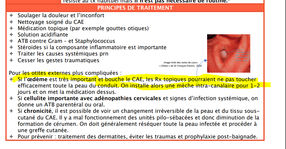 patient a une grosse Otite externe avec oedeme qui bouche le CAE