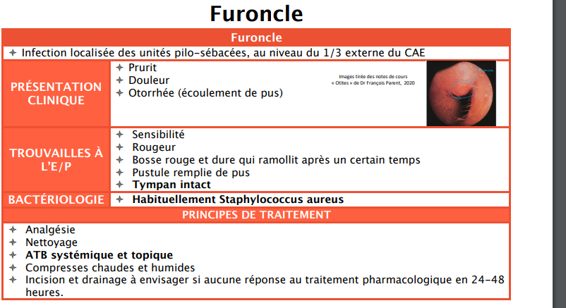 une bosse rouge edt dr qui ramollit apers un certain temps, au 1/3 externe du CAE