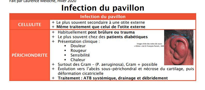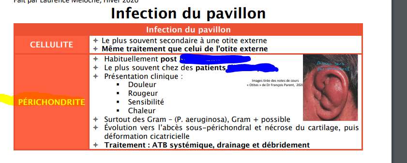 PÉRICHONDRITE ( post brulure ou trauma chez DB)