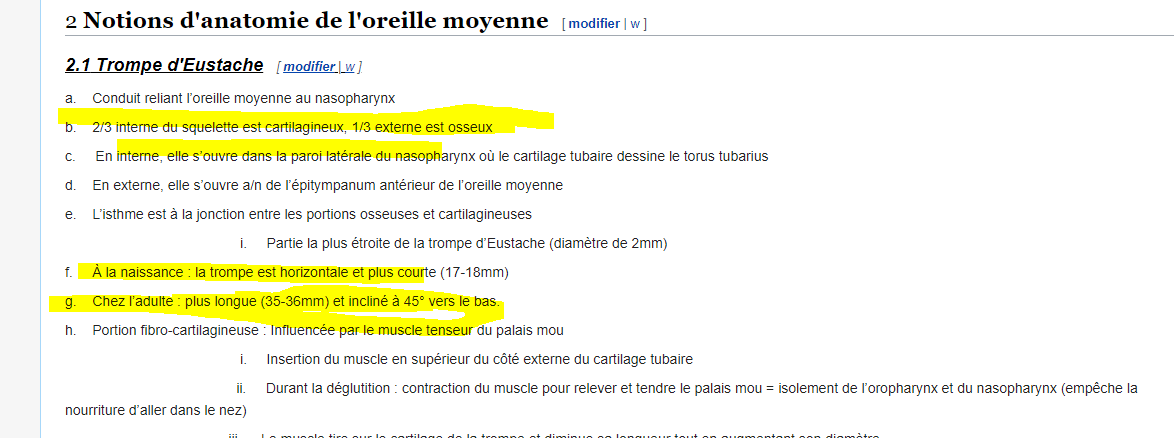 influence juste la portion fibro-cartilagineuse ( 2/3 interne)