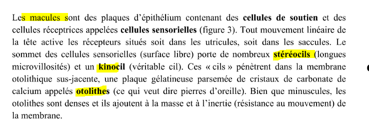 PRobablement pck OTOLITHES se détache de l’UTRICULE et vont dans canaux