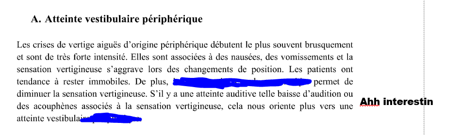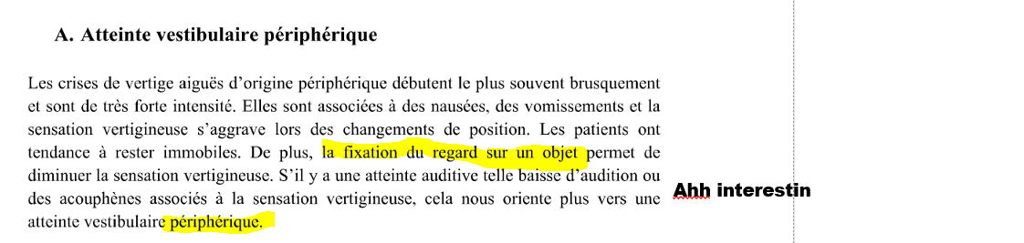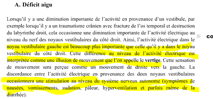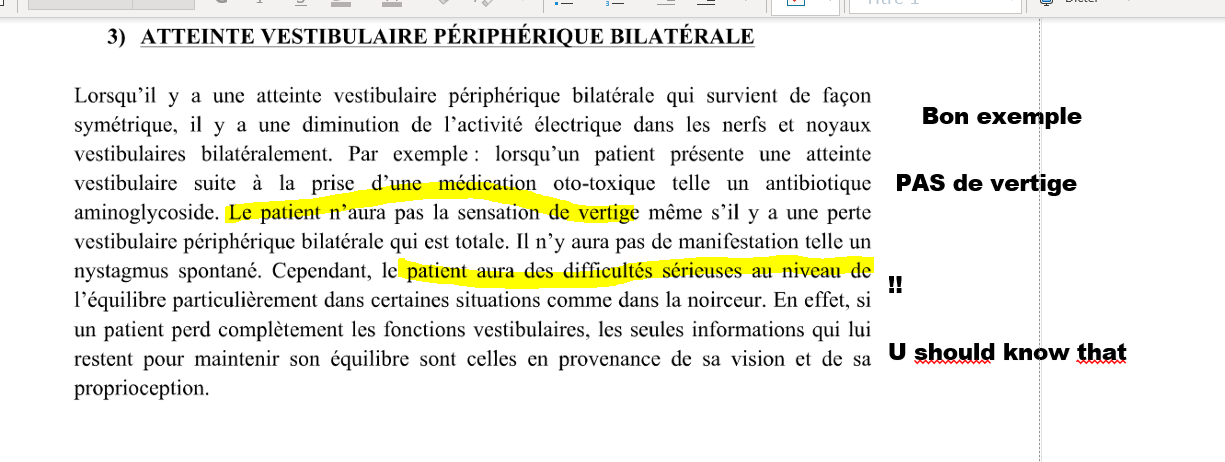 N’aura pas de vertige !!!!! Pck atteinte symétrique donc pas de gap entre activité electrique des deux