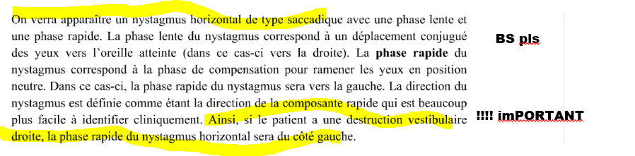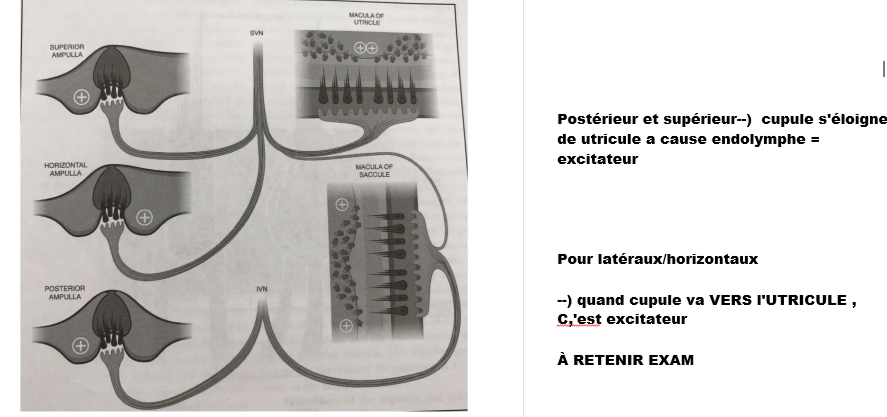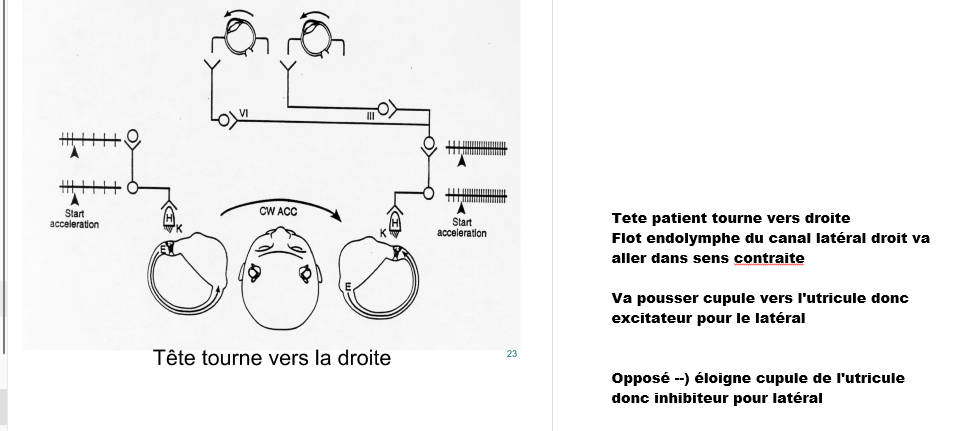 Et comme on tourne à droite, endolymphe va vers gauche donc vers utricule