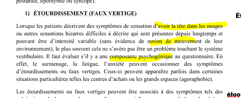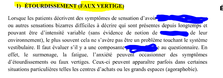 donne 2 exemples de condition qui donne étourdissement